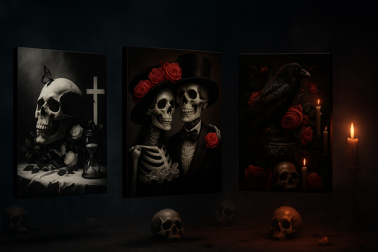 This isn’t just art — it’s a reflection of the beauty hidden in the shadows. Each canvas whispers stories of love, death, and eternity, hand-crafted to awaken the gothic spirit that never fades. Whether it hangs in your lair, above your altar, or beside a flickering candle, these aren’t just paintings — they’re echoes of the darkness that lives within us.